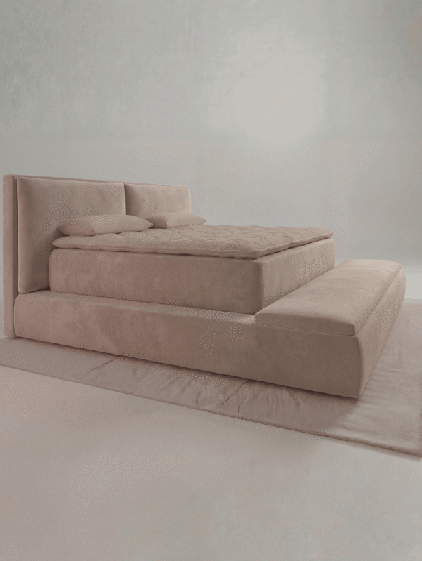 (Länge: 2.20m | Breite: 1.64m) Ina Bett Beige mit 4 Gratis Kissen